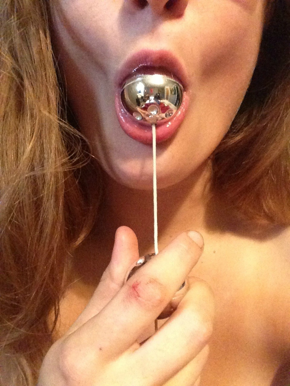 Любвеобильная рыженькая девушка любит пошалить со своей киской в одиночку и заснять это на фотоаппарат.