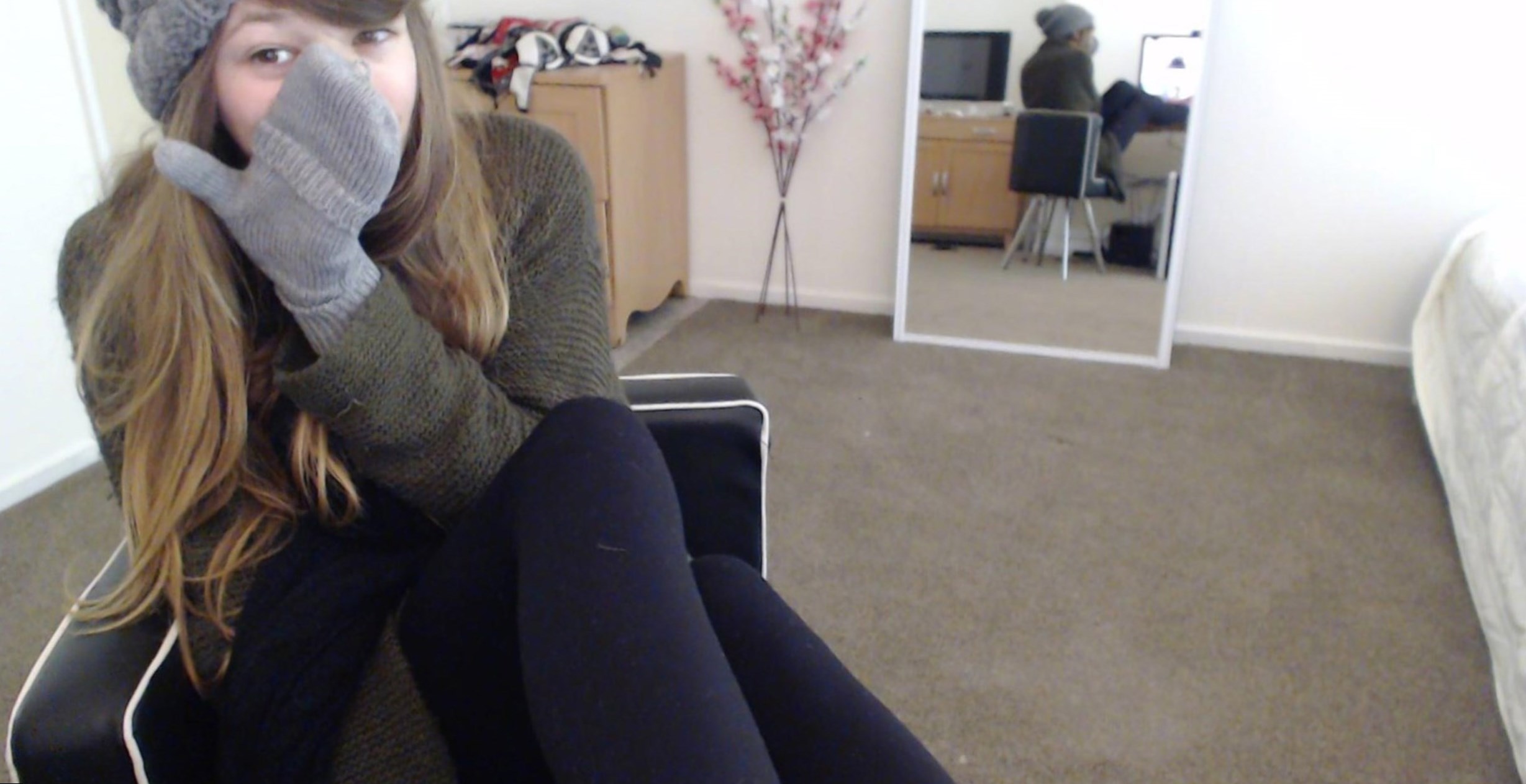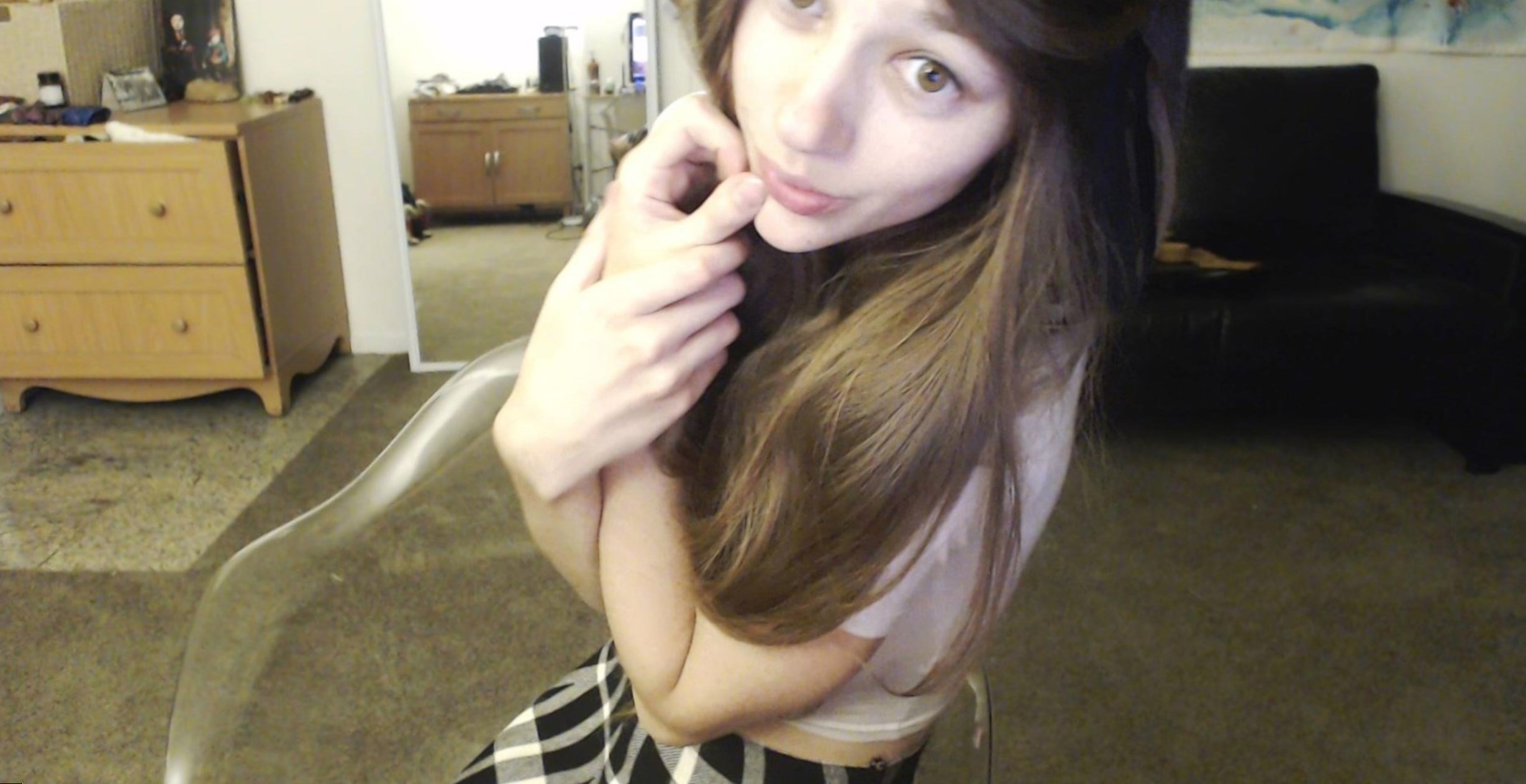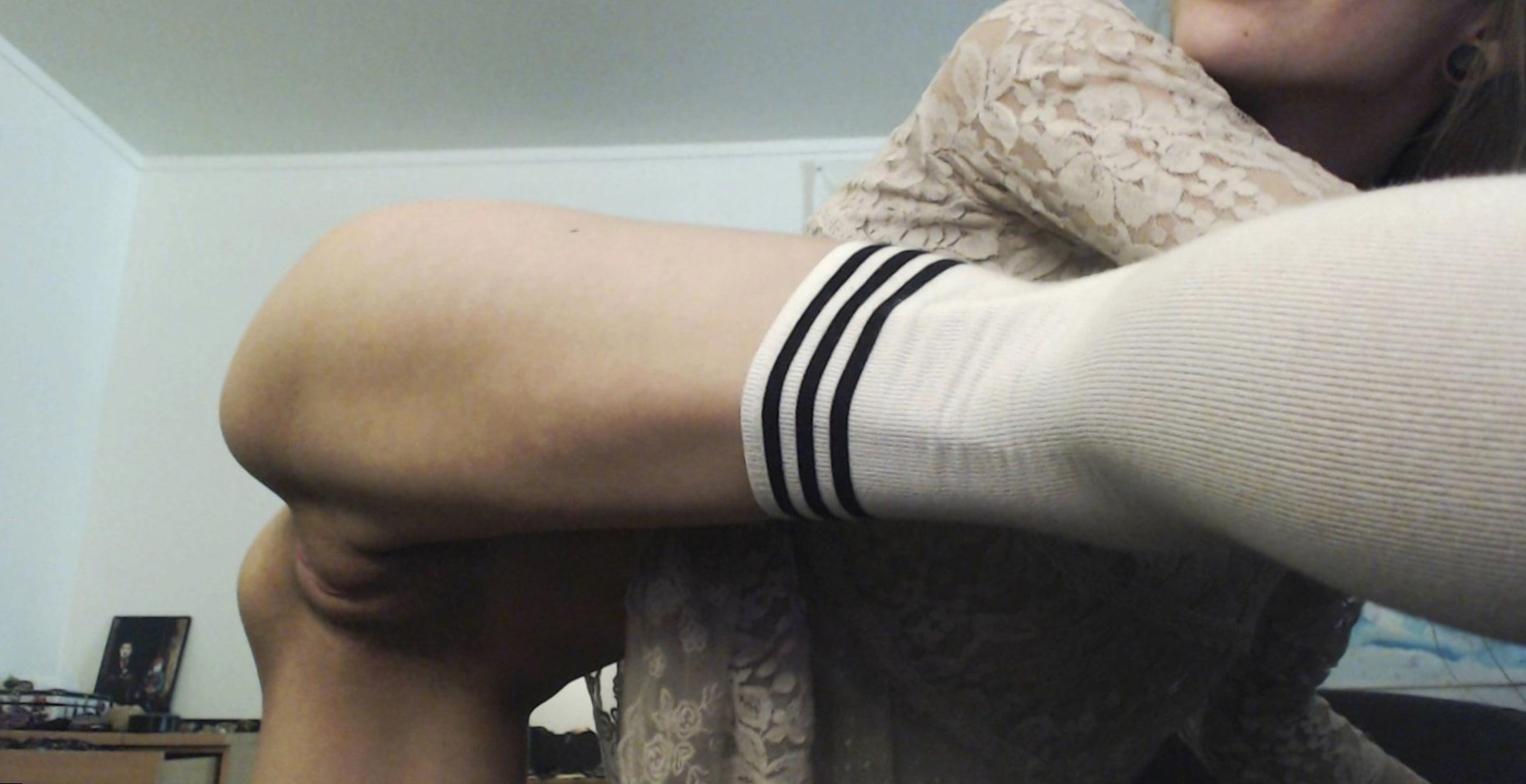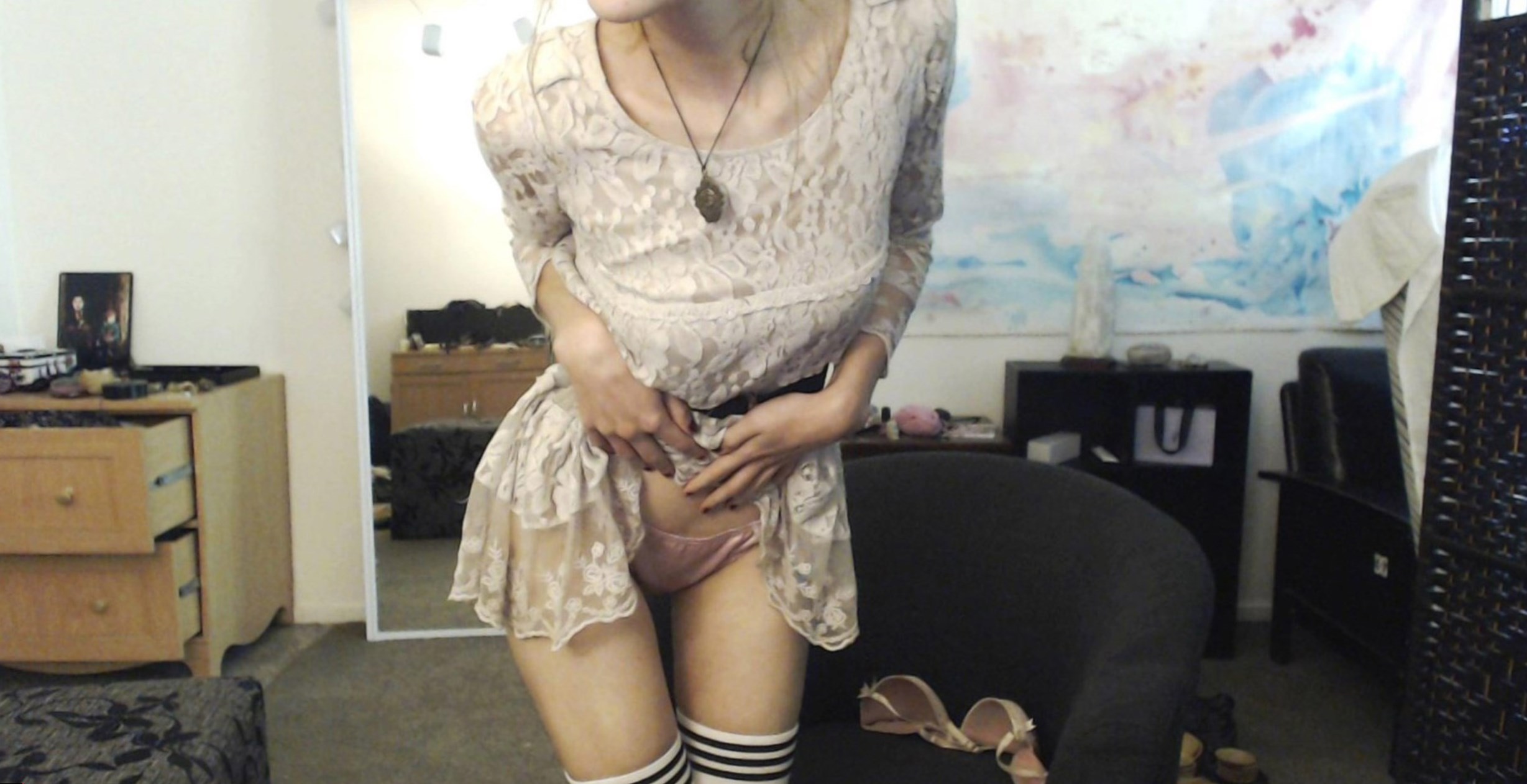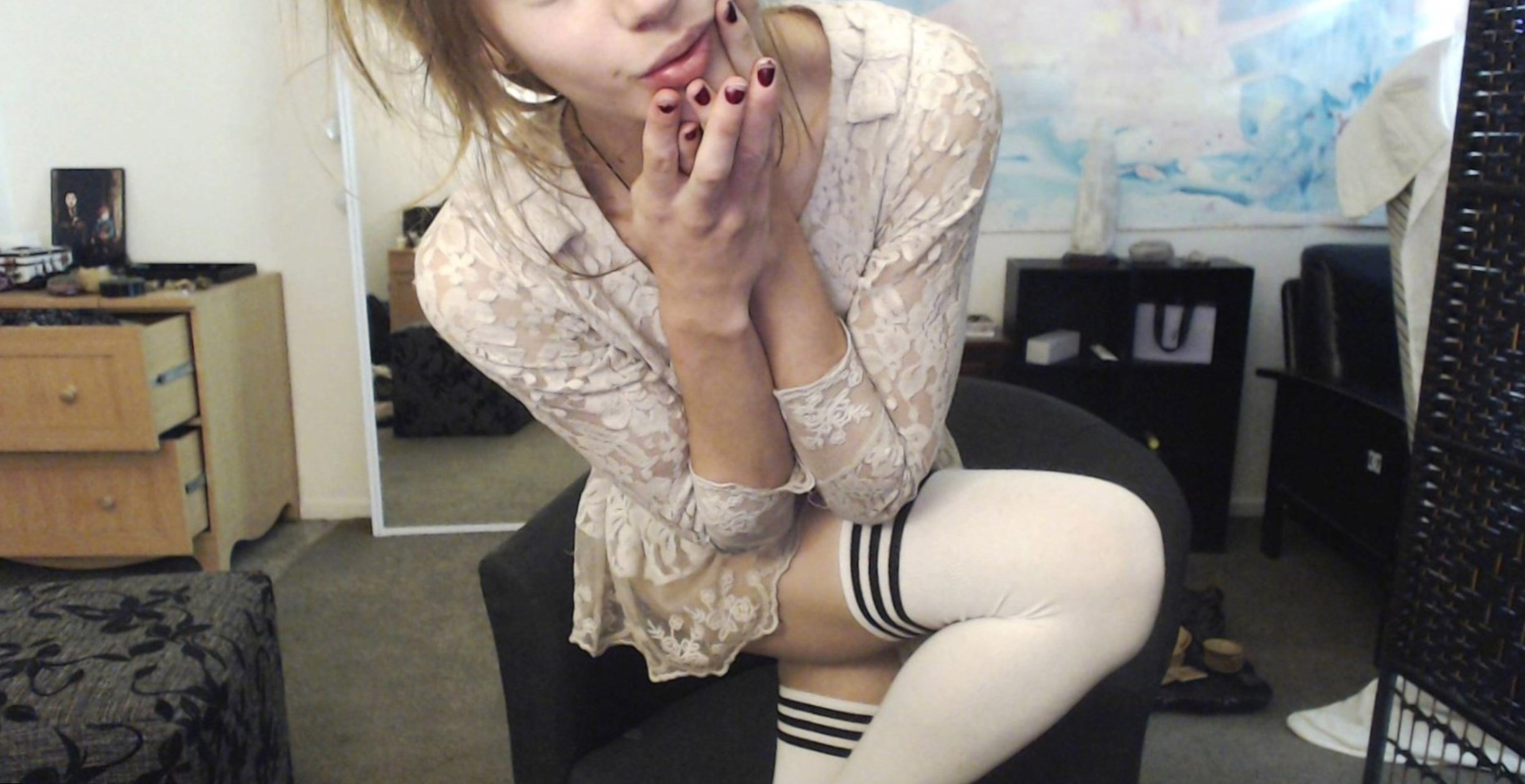 Сексуальная молодая девушка фотографируется у себя дома, демонстрируя свое стройное тело, и потирая сладкие дырочки в разных ракурсах.