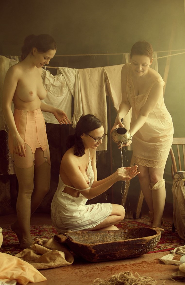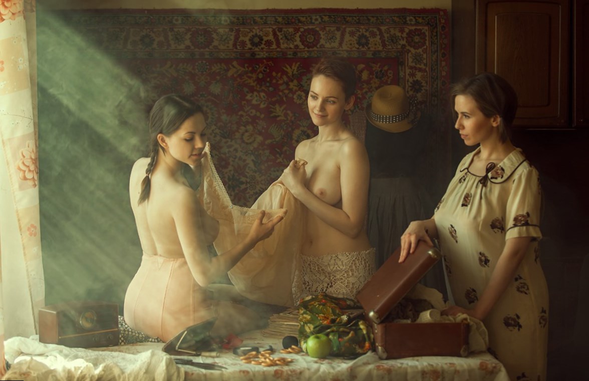 Профессиональные фото девушек в винтажном (или около винтажном) стиле… девушек которых вы видите, выглядят весьма своеобразно. Старинные прически, заросли на лобках, советский антураж. Поначалу эти фотографии выглядят забавно, но стоит присмотреться, и вы поймете, что телочки в ту эпоху были весьма аппетитны. И это хотели как то сделать фотографы. Не знаю получилось ли это у них, но разве это главное? Дух свободы, счастья и единения с природой – вот что притягивает нас в ретро ню.